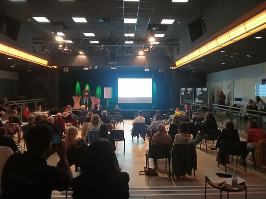 Im Hallenbad- junge Kultur kamen um 18:00 Uhr allerhand (zuvor angemeldete) Leute zusammen, die in mehreren, noch folgenden Workshops die Coronamaßnahmen für